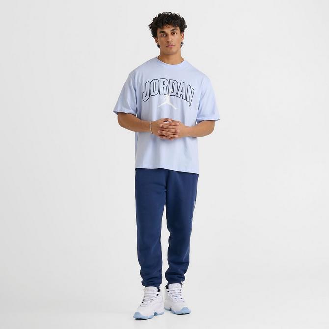 رنگ آبی (Navy / Blue Tone) در کنار چاپ لوگوی قوسی Jordan، ظاهری کلاسیک و قابل ست با انواع شلوار جین، اسلش و استایلهای استریت ایجاد میکند.
